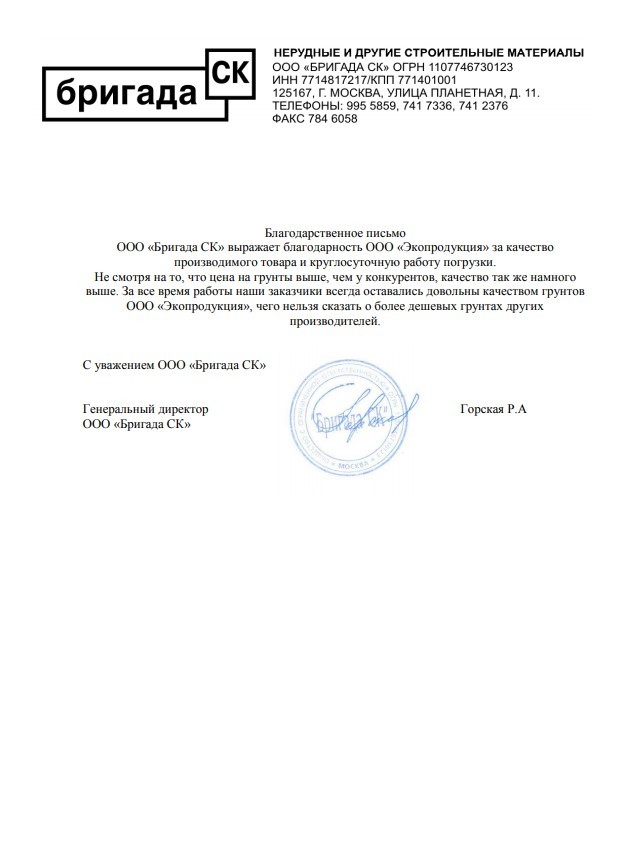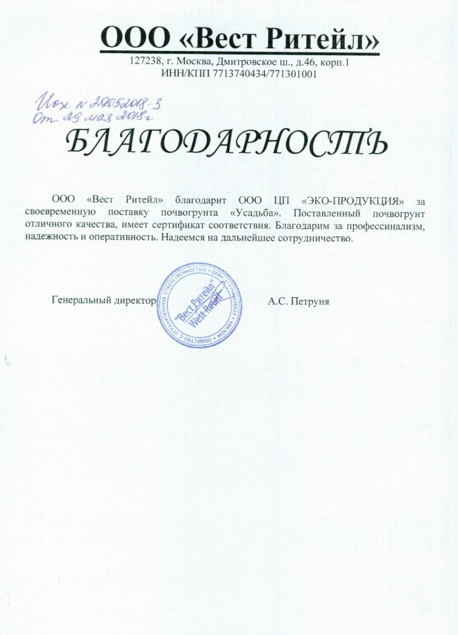 Наши грунты соответствуют требованиям Департамента природопользования и охраны окружающей среды города Москвы.